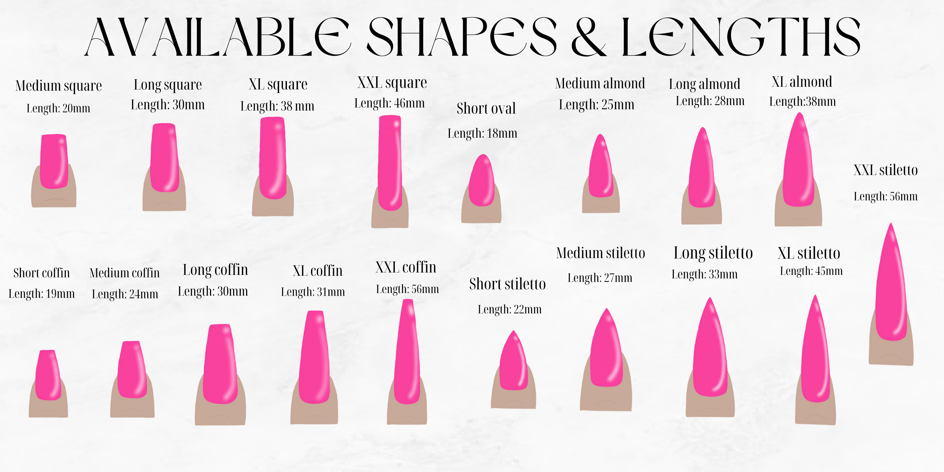 Our focus is on producing top-tier, long-lasting press-on nails designed for multiple reuses with proper maintenance. To ensure durability, simply follow our care instructions: gently remove the nails, clean them thoroughly, and store them safely. Enjoy lovely nails again and again and develop a personalised collection of press-on nails to match any occasion or outfit.
